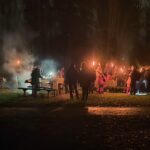 Mit einer Fackel in der Hand führte der Weg am Kleintierzüchterheim vorbei zum Jägerplatz, wo schon das Lagerfeuer auf uns wartete. Der Nieselregen hat die Fackelläufer nicht abgeschreckt.